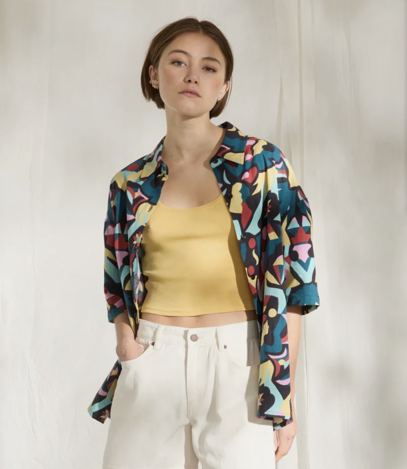 Esta camisa de Volcom 'FA Bruno Lucas', no es solo una prenda, es una pieza de diseño que combina la rebeldía del streetwear con un estampado geométrico vibrante y contemporáneo