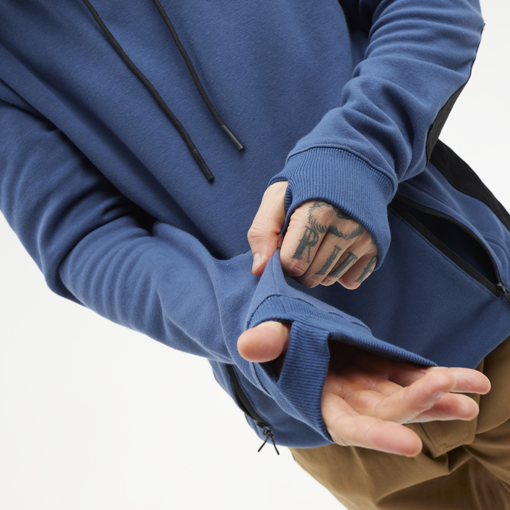 Cierre de cremallera y bolsillo tipo canguro